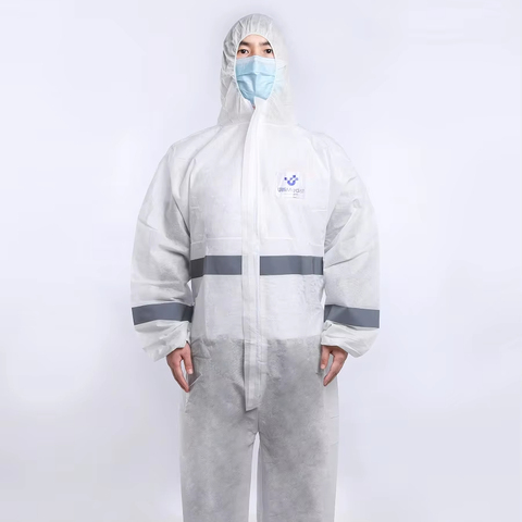 Kaput ve yansıtıcı bant ile tek kullanımlık tulum